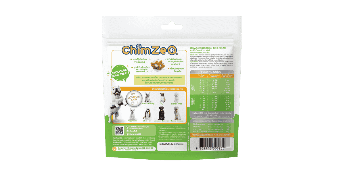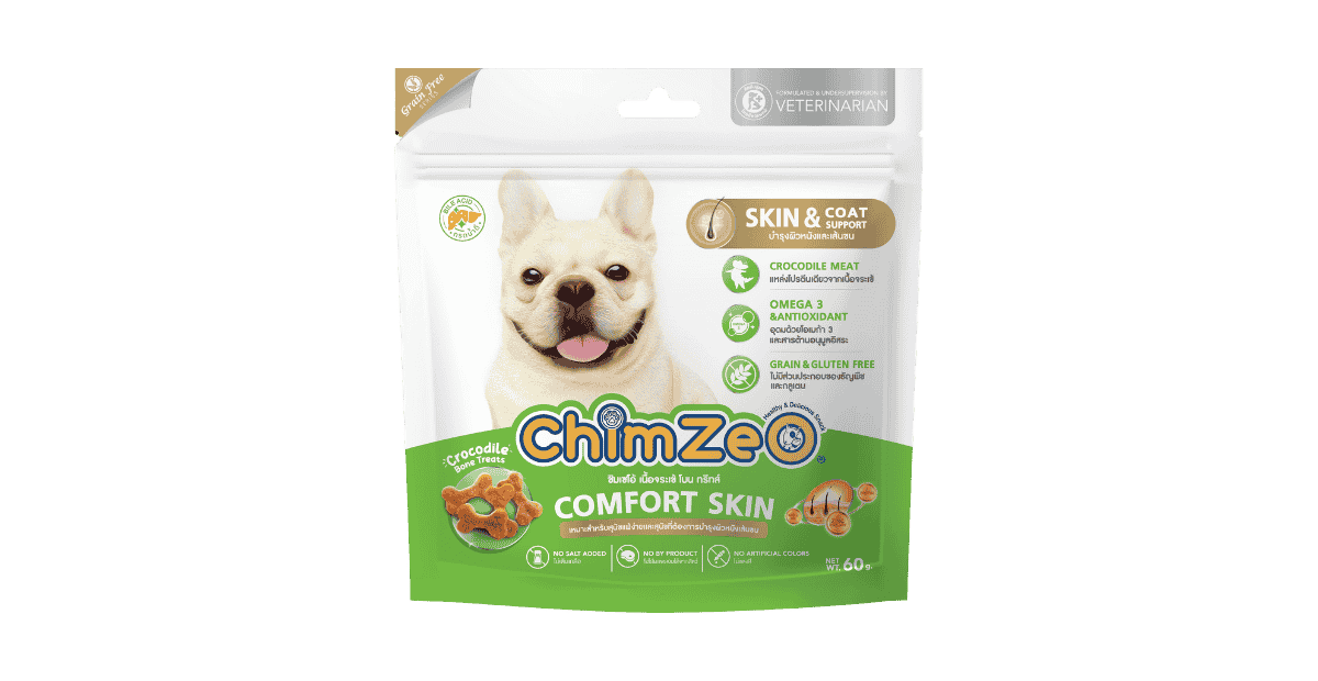 ChimZeo Comfort Skin Crocodile Bone Treats ซิมเซโอ้ ขนมสุนัขเพื่อสุขภาพ เนื้อจระเข้ โบนทรีทส์ สำหรับสุนัขแพ้ง่าย บำรุงผิวหนังและเส้นขน 60g