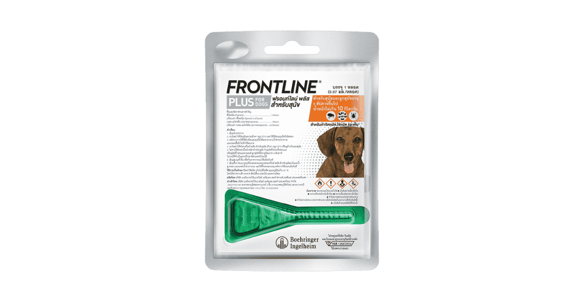 Frontline Plus For Dogs ฟรอนท์ไลน์ พลัส ยาหยดกำจัดเห็บหมัด สำหรับสุนัข น้ำหนักไม่เกิน 10 kg 1 หลอด (0.67 ml)