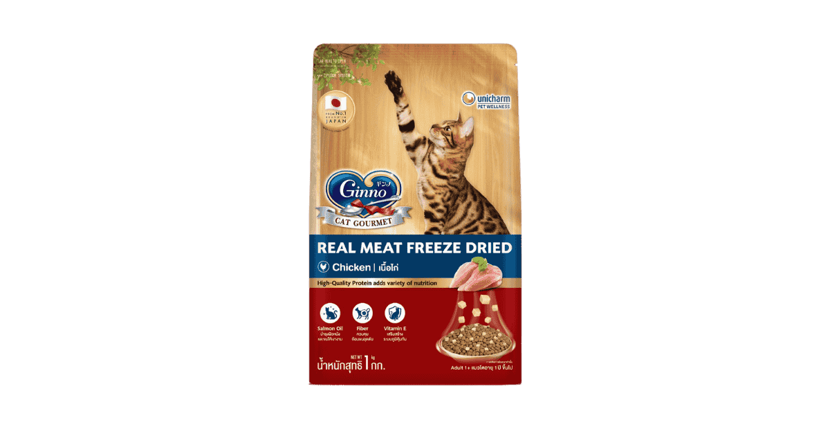 Ginno Real Meat Freeze Dried Chicken กินโนะ อาหารแมวผสมฟรีซดราย สูตรเนื้อไก่ 1 kg