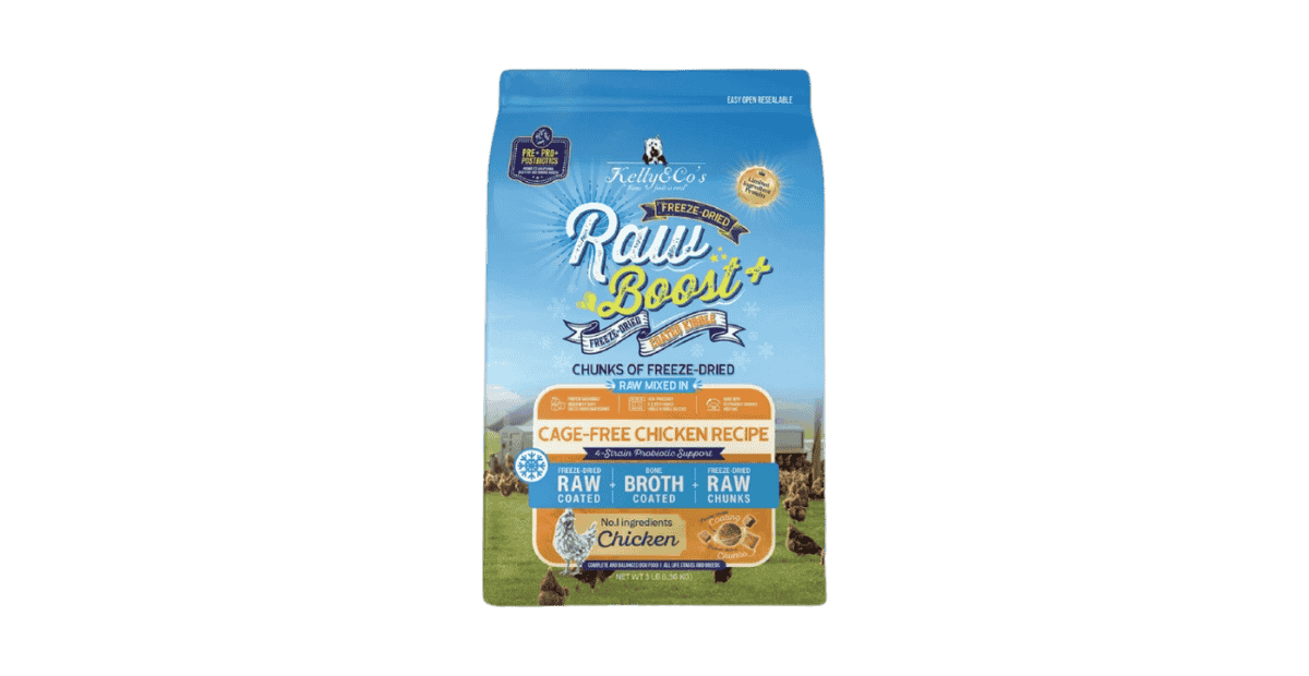 Kelly & Co’s Raw Boost Freeze Dried Coated Kibble Cage-Free Chicken Recipe เคลลี่แอนด์โค อาหารสุนัขเกรนฟรี เคลือบผงฟรีซดราย+เม็ดฟรีซดราย สูตรเนื้อไก่ 1.36kg