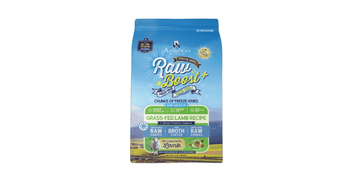 Kelly & Co’s Raw Boost Freeze Dried Coated Kibble Grass-Fed Lamb Recipe เคลลี่แอนด์โค อาหารสุนัขเกรนฟรี เคลือบผงฟรีซดราย+เม็ดฟรีซดราย สูตรเนื้อแกะ 1.36kg