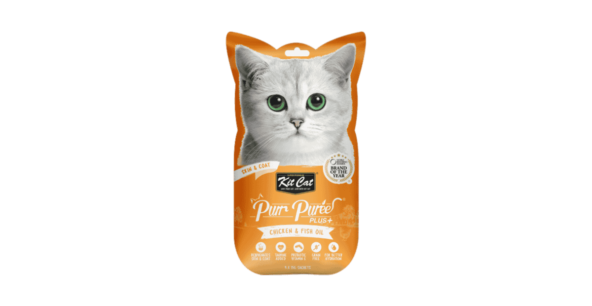 Kit Cat Purr Puree Plus+ Chicken & Fish Oil (Skin & Coat) คิทแคท ขนมแมวเลีย รสไก่ผสมน้ำมันปลา (บำรุงผิวและขน) 60g