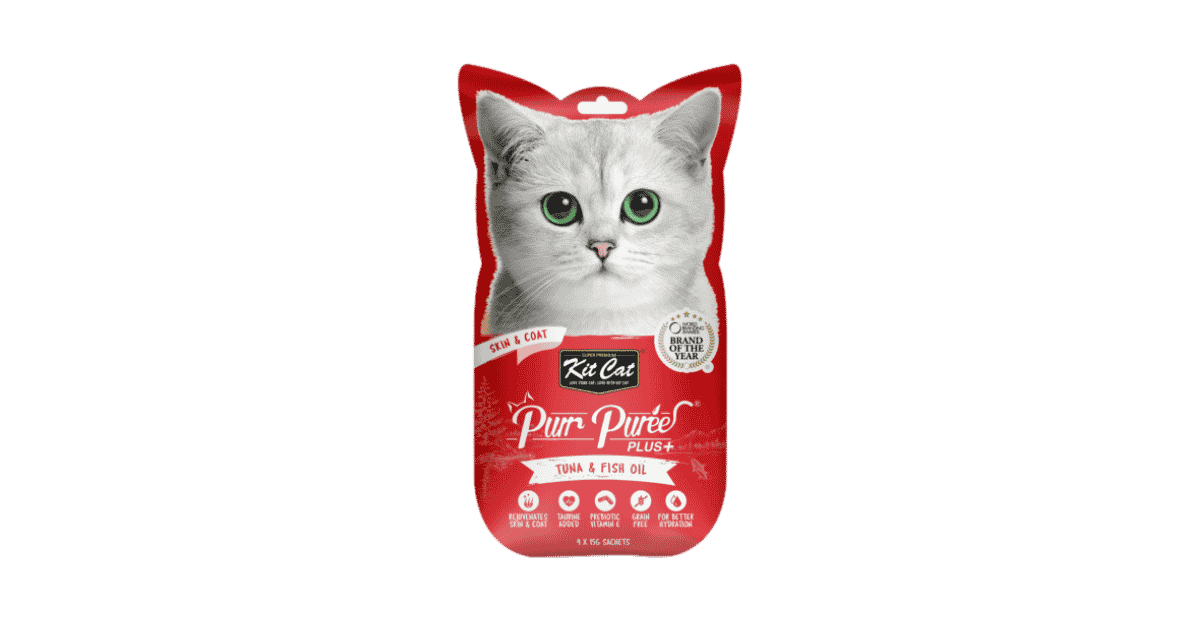Kit Cat Purr Puree Plus+ Tuna & Fish Oil (Skin & Coat) คิทแคท ขนมแมวเลีย รสทูน่าผสมน้ำมันปลา (บำรุงผิวและขน) 60g