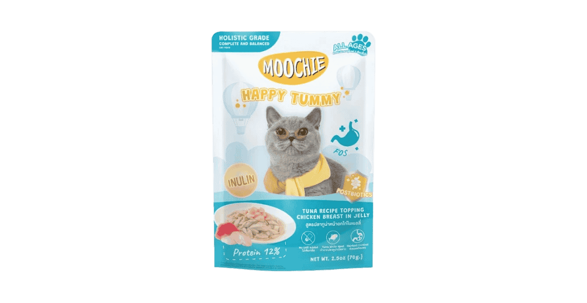 Moochie Holistic Cat Food Happy Tummy มูชี่ อาหารเปียกแมว โฮลิสติก สูตรปลาทูน่าหน้าอกไก่ในเยลลี่ (บำรุงระบบลำไส้)