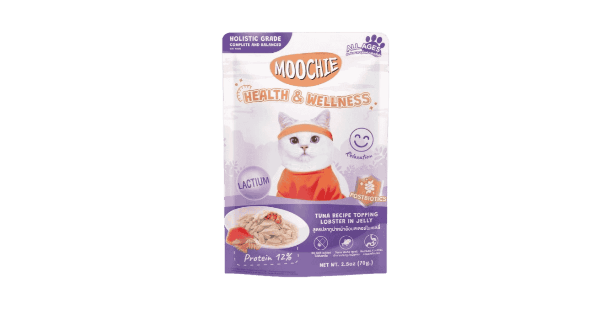 Moochie Holistic Cat Food Health & Wellness มูชี่ อาหารเปียกแมว โฮลิสติก สูตรปลาทูน่าหน้าล็อบสเตอร์ในเยลลี่ (ผ่อนคลายความเครียด)